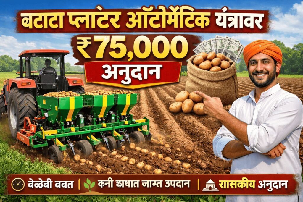 рд╢реЗрддрдХрд▒реНрдпрд╛рдВрдЪреНрдпрд╛ рд╢реЗрддреАрдХрд╛рдорд╛рдд рдордЬреВрд░ рдЯрдВрдЪрд╛рдИ, рд╡рд╛рдврддрд╛ рдЦрд░реНрдЪ рдЖрдгрд┐ рд╡реЗрд│реЗрдЪреА рдХрдорддрд░рддрд╛ рдпрд╛ рд╕рдорд╕реНрдпрд╛ рдХрд╛рдпрдо рдЖрд╣реЗрдд. рд╡рд┐рд╢реЗрд╖рддрдГ рдмрдЯрд╛рдЯрд╛ рд▓рд╛рдЧрд╡рдб рдХрд░рддрд╛рдирд╛ рдмрд┐рдпрд╛рдгреЗ рдЯрд╛рдХрдгреЗ, рдЕрдВрддрд░ рд░рд╛рдЦрдгреЗ рд╡ рдУрд│реА рд╕рд░рд│ рдареЗрд╡рдгреЗ рд╣реЗ рдХрд╛рдо рд╡реЗрд│рдЦрд╛рдК рдЕрд╕рддреЗ. рдпрд╛рд╕рд╛рдареА рд╢рд╛рд╕рдирд╛рдХрдбреВрди рдСрдЯреЛрдореЕрдЯрд┐рдХ рдмрдЯрд╛рдЯрд╛ рдкреНрд▓рд╛рдВрдЯрд░ рдпрдВрддреНрд░ рдЦрд░реЗрджреАрд╕рд╛рдареА тВ╣75,000 рдкрд░реНрдпрдВрдд рдЕрдиреБрджрд╛рди рджрд┐рд▓реЗ рдЬрд╛рддреЗ.