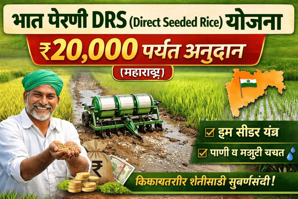 рдорд╣рд╛рд░рд╛рд╖реНрдЯреНрд░рд╛рддреАрд▓ рднрд╛рдд рдЙрддреНрдкрд╛рджрдХ рд╢реЗрддрдХрд▒реНрдпрд╛рдВрд╕рд╛рдареА рднрд╛рдд рдкреЗрд░рдгреА DRS (Direct Seeded Rice) рд╣реА рдЖрдзреБрдирд┐рдХ рд╡ рдЦрд░реНрдЪ рдХрдореА рдХрд░рдгрд╛рд░реА рдкрджреНрдзрдд рдЖрд╣реЗ. рдпрд╛ рдкрджреНрдзрддреАрдд рд░реЛрдк рд▓рд╛рд╡рдгреА рди рдХрд░рддрд╛ рдереЗрдЯ рдмрд┐рдпрд╛рдгреНрдпрд╛рдВрдЪреА рдкреЗрд░рдгреА рдХреЗрд▓реА рдЬрд╛рддреЗ. рд╢рд╛рд╕рдирд╛рдХрдбреВрди рдпрд╛ рдкрджреНрдзрддреАрд╕ рдкреНрд░реЛрддреНрд╕рд╛рд╣рди рджреЗрдгреНрдпрд╛рд╕рд╛рдареА тВ╣20,000 рдкрд░реНрдпрдВрдд рдЕрдиреБрджрд╛рди рджрд┐рд▓реЗ рдЬрд╛рддреЗ.