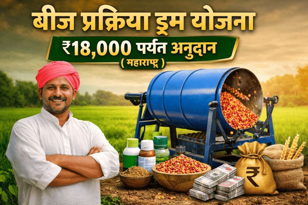рд╢реЗрддрдХрд▒реНрдпрд╛рдВрдирд╛ рдЙрддреНрддрдо рдЙрдЧрд╡рдг, рд░реЛрдЧрдореБрдХреНрдд рдкреАрдХ рдЖрдгрд┐ рдЬрд╛рд╕реНрдд рдЙрддреНрдкрд╛рджрди рдорд┐рд│рд╛рд╡реЗ рдпрд╛рд╕рд╛рдареА рдмреАрдЬ рдкреНрд░рдХреНрд░рд┐рдпрд╛ (Seed Treatment) рдХрд░рдгреЗ рдЕрддреНрдпрдВрдд рдорд╣рддреНрддреНрд╡рд╛рдЪреЗ рдЕрд╕рддреЗ. рд╣реА рдкреНрд░рдХреНрд░рд┐рдпрд╛ рд╕реЛрдкреА, рд╕реБрд░рдХреНрд╖рд┐рдд рдЖрдгрд┐ рдХрдореА рдЦрд░реНрдЪрд╛рдд рдХрд░рддрд╛ рдпрд╛рд╡реА рдореНрд╣рдгреВрди рдмреАрдЬ рдкреНрд░рдХреНрд░рд┐рдпрд╛ рдбреНрд░рдо рдпреЛрдЬрдирд╛ рд░рд╛рдмрд╡рд▓реА рдЬрд╛рддреЗ. рдпрд╛ рдпреЛрдЬрдиреЗрдЕрдВрддрд░реНрдЧрдд рд╢реЗрддрдХрд▒реНрдпрд╛рдВрдирд╛ тВ╣18,000 рдкрд░реНрдпрдВрдд рдЕрдиреБрджрд╛рди рджрд┐рд▓реЗ рдЬрд╛рддреЗ.