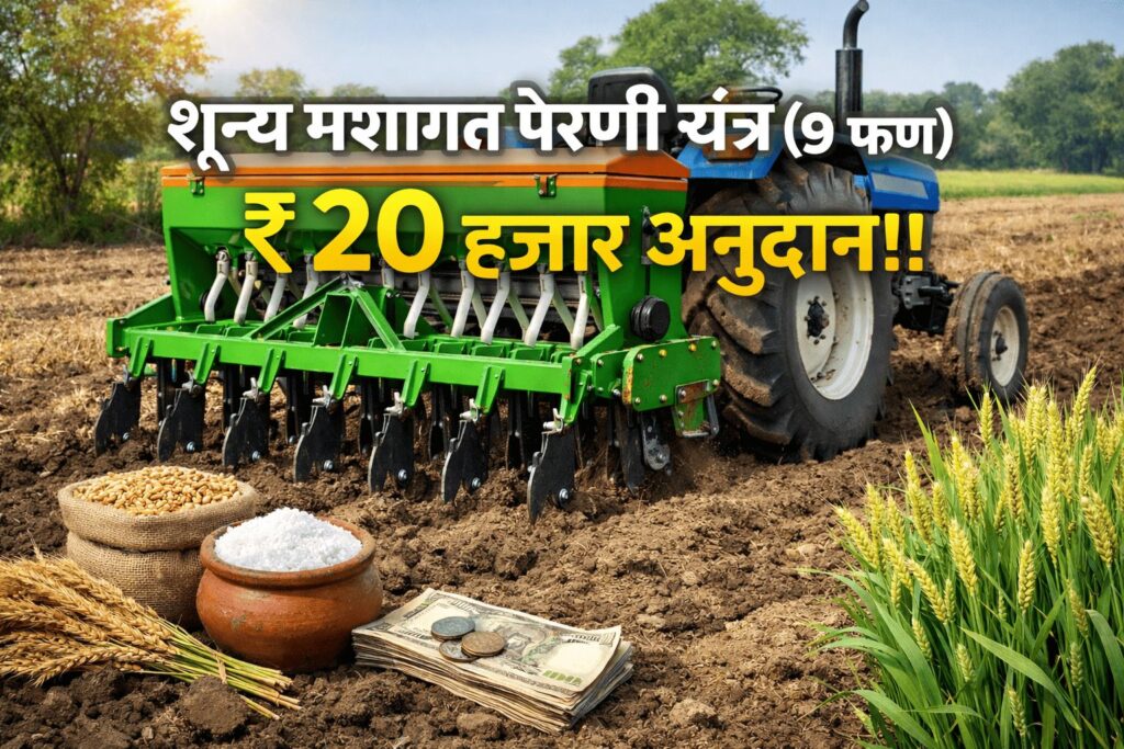рд╢реЗрддрдХрд▒реНрдпрд╛рдВрдЪрд╛ рдЦрд░реНрдЪ рдХрдореА рдХрд░реВрди рдЙрддреНрдкрд╛рджрди рд╡рд╛рдврд╡рдгреНрдпрд╛рд╕рд╛рдареА рд╢реВрдиреНрдп рдорд╢рд╛рдЧрдд рдкреЗрд░рдгреА рдпрдВрддреНрд░ (Zero Tillage Seed Drill) рд╣реА рдЖрдзреБрдирд┐рдХ рдкрджреНрдзрдд рдЙрдкрдпреБрдХреНрдд рдард░рдд рдЖрд╣реЗ. рд╡рд┐рд╢реЗрд╖рддрдГ 9 рдлрдг (Tine) рд╢реВрдиреНрдп рдорд╢рд╛рдЧрдд рдкреЗрд░рдгреА рдпрдВрддреНрд░рд╛рд╡рд░ тВ╣20,000 рдкрд░реНрдпрдВрдд рдЕрдиреБрджрд╛рди рдЙрдкрд▓рдмреНрдз рдЕрд╕рд▓реНрдпрд╛рдореБрд│реЗ рд╣реЗ рдпрдВрддреНрд░ рд╢реЗрддрдХрд▒реНрдпрд╛рдВрд╕рд╛рдареА рдЕрдзрд┐рдХ рдкрд░рд╡рдбрдгрд╛рд░реЗ рдЭрд╛рд▓реЗ рдЖрд╣реЗ.