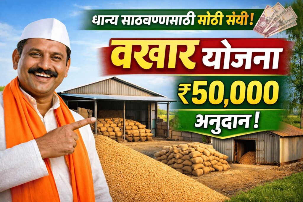 рд╡рдЦрд╛рд░ рдпреЛрдЬрдирд╛ рд╣реА рд╢реЗрддрдХрд▒реНрдпрд╛рдВрд╕рд╛рдареА рдЕрддреНрдпрдВрдд рдЙрдкрдпреБрдХреНрдд рдЕрд╕реВрди рдзрд╛рдиреНрдп рд╕рд╛рдард╡рдгреАрдЪреА рд╕рдорд╕реНрдпрд╛ рд╕реЛрдбрд╡рддреЗ. тВ╣50,000 рдкрд░реНрдпрдВрдд рдЕрдиреБрджрд╛рди рдорд┐рд│рд╛рд▓реНрдпрд╛рдореБрд│реЗ рд╢реЗрддрдХрд░реА рдХрдореА рдЦрд░реНрдЪрд╛рдд рд╕реБрд░рдХреНрд╖рд┐рдд рд╕рд╛рдард╡рдг рд╕реБрд╡рд┐рдзрд╛ рдЙрднрд╛рд░реВ рд╢рдХрддрд╛рдд.